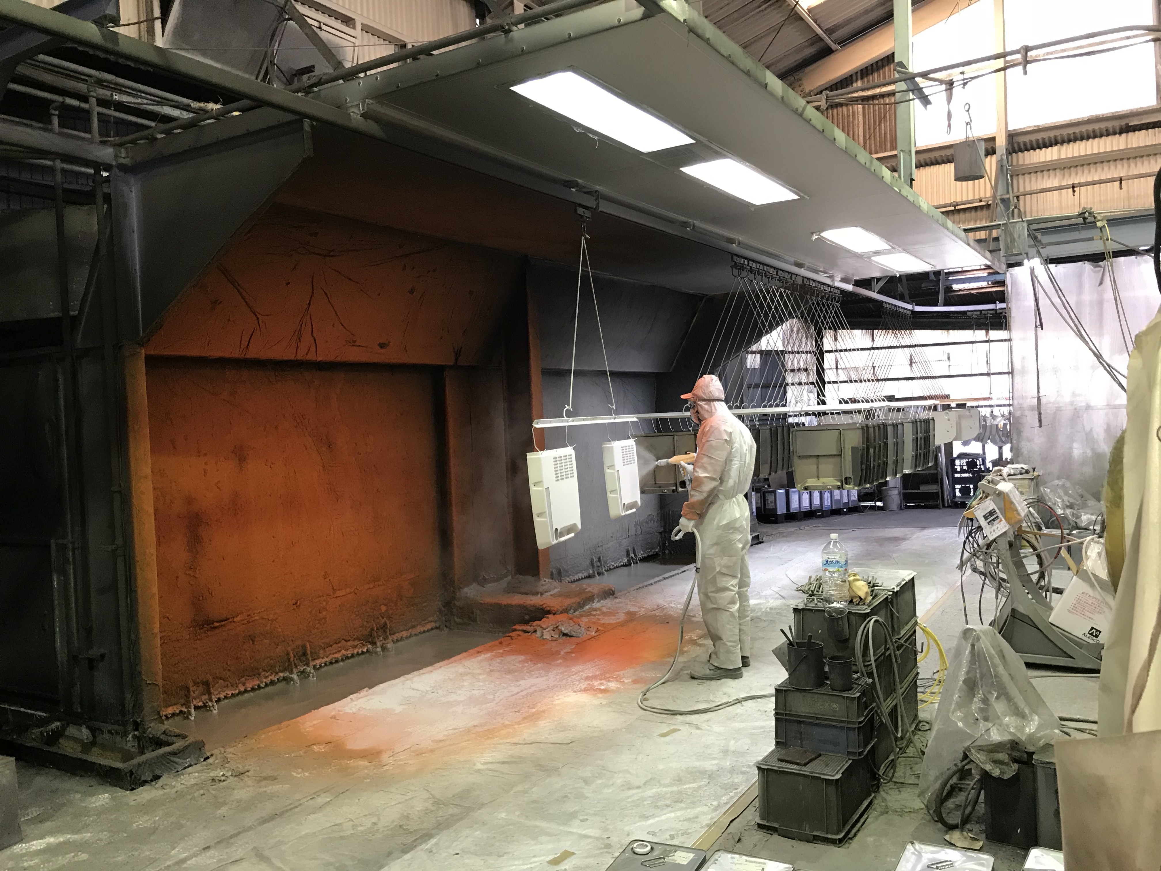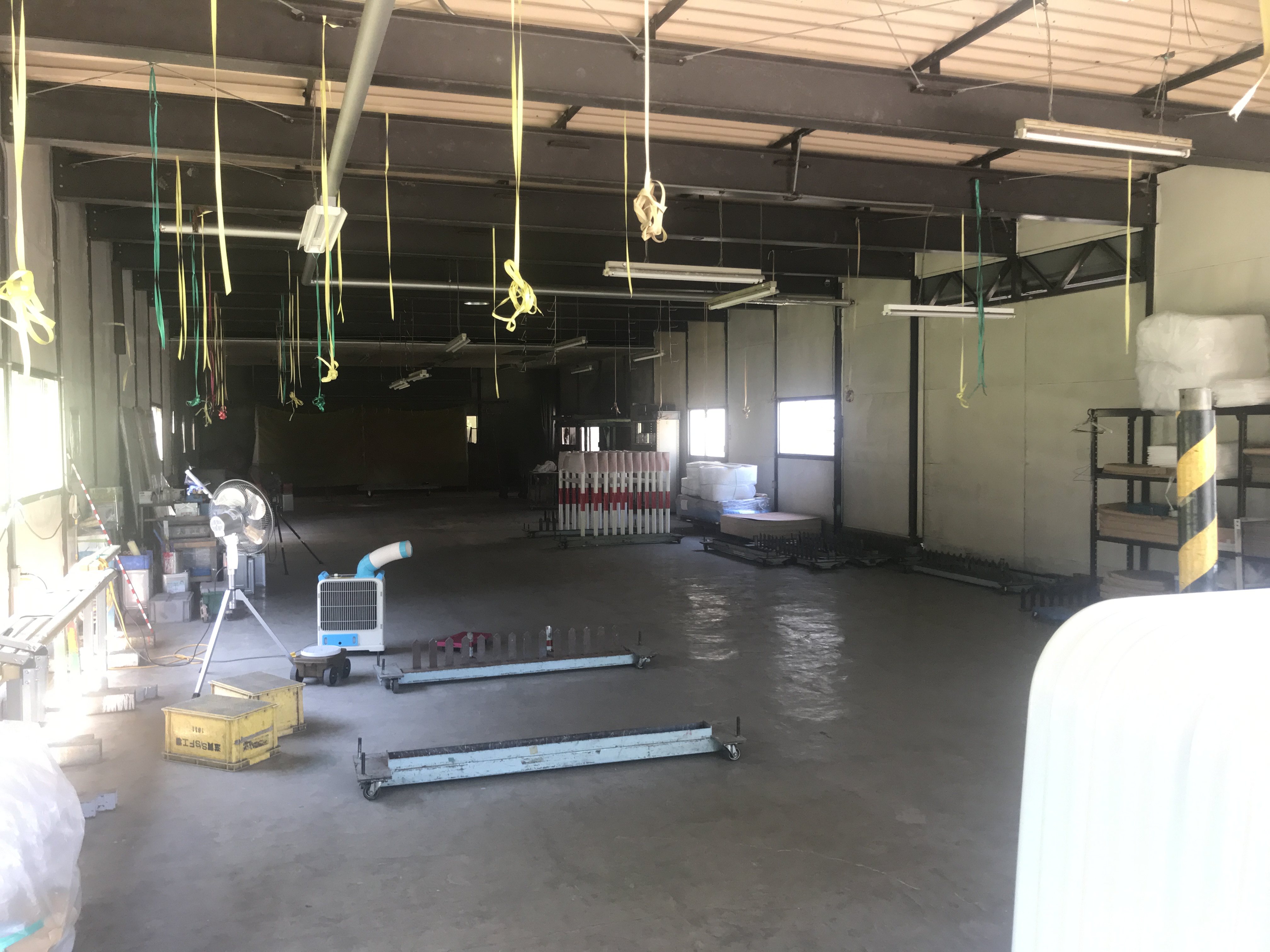 水栓ブース(2m×4m)、焼付乾燥炉(1.8m×3.2m×4.6m)の設備です。