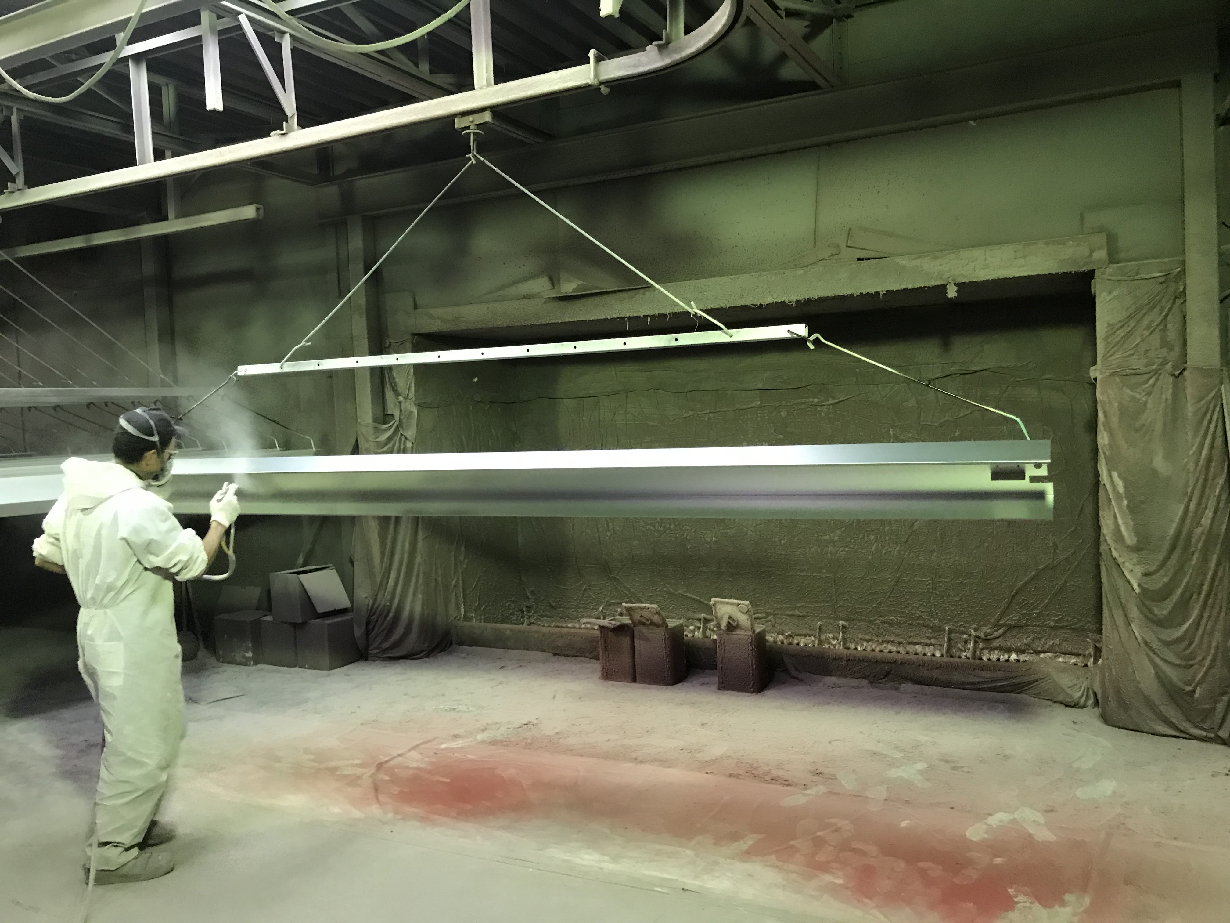 また、リン酸鉄前処理が出来ることと、長くてリン酸鉄の前処理は出来ませんが最大6m(約80kg)までの長尺物を塗装し焼付乾燥炉に入れる事が出来ます。